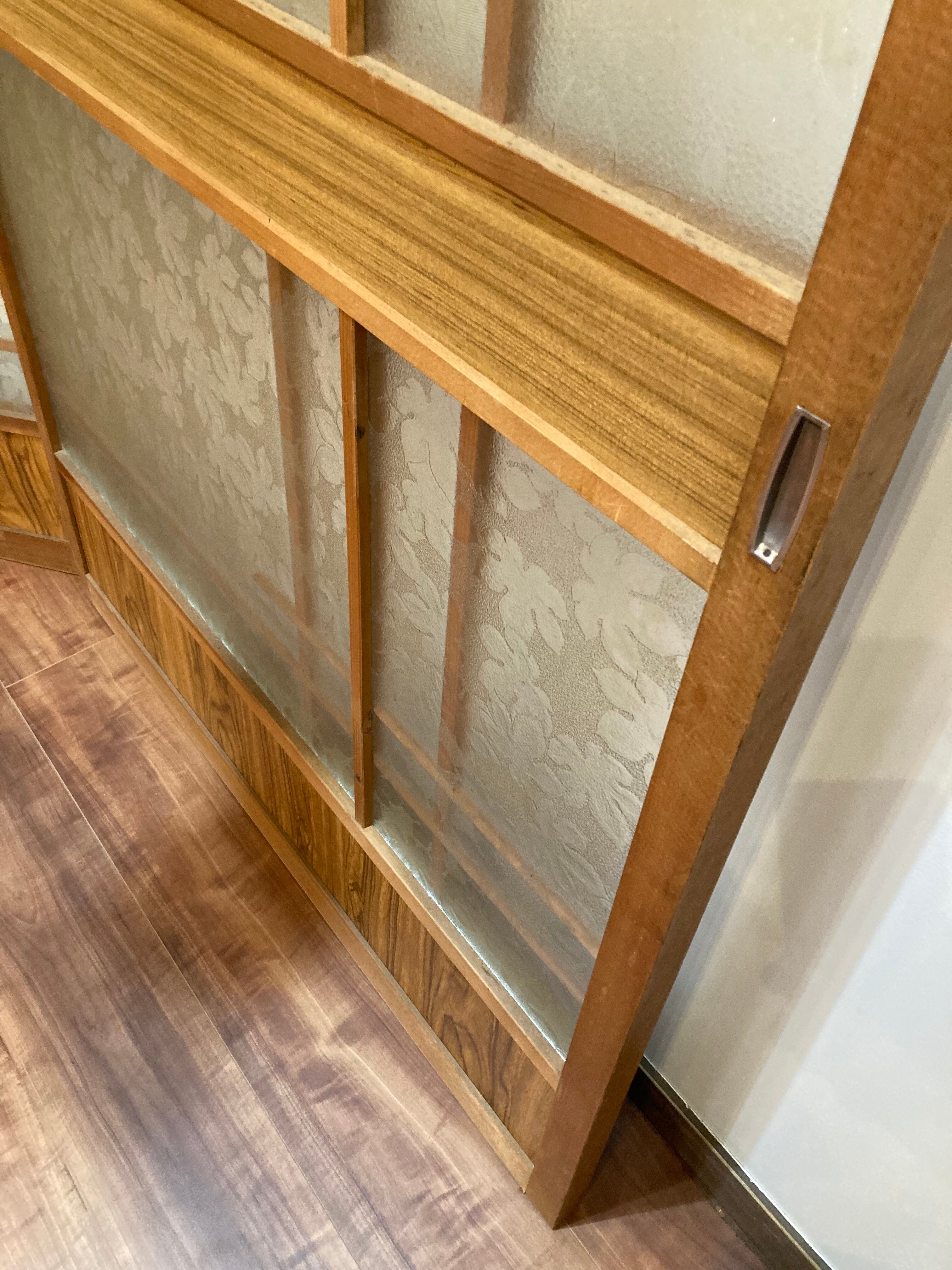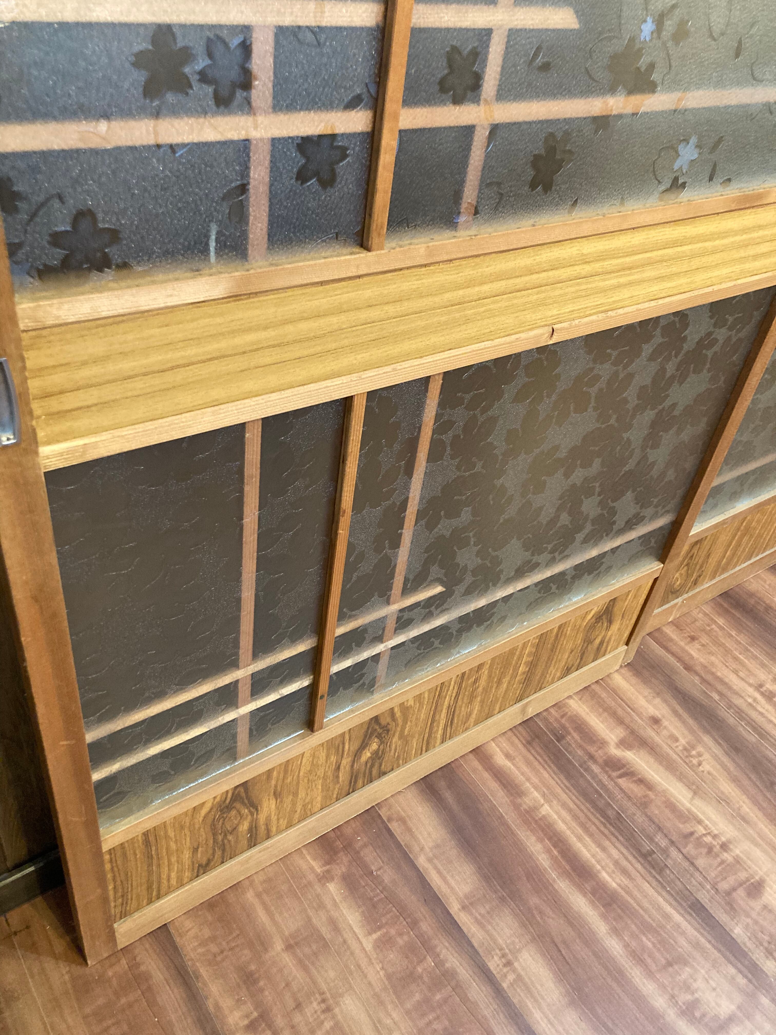 引き戸として使われていたようですが、戸車の動作確認をしていないため、手を入れないと使用できないと思われます。ご了承の上ご購入ください。