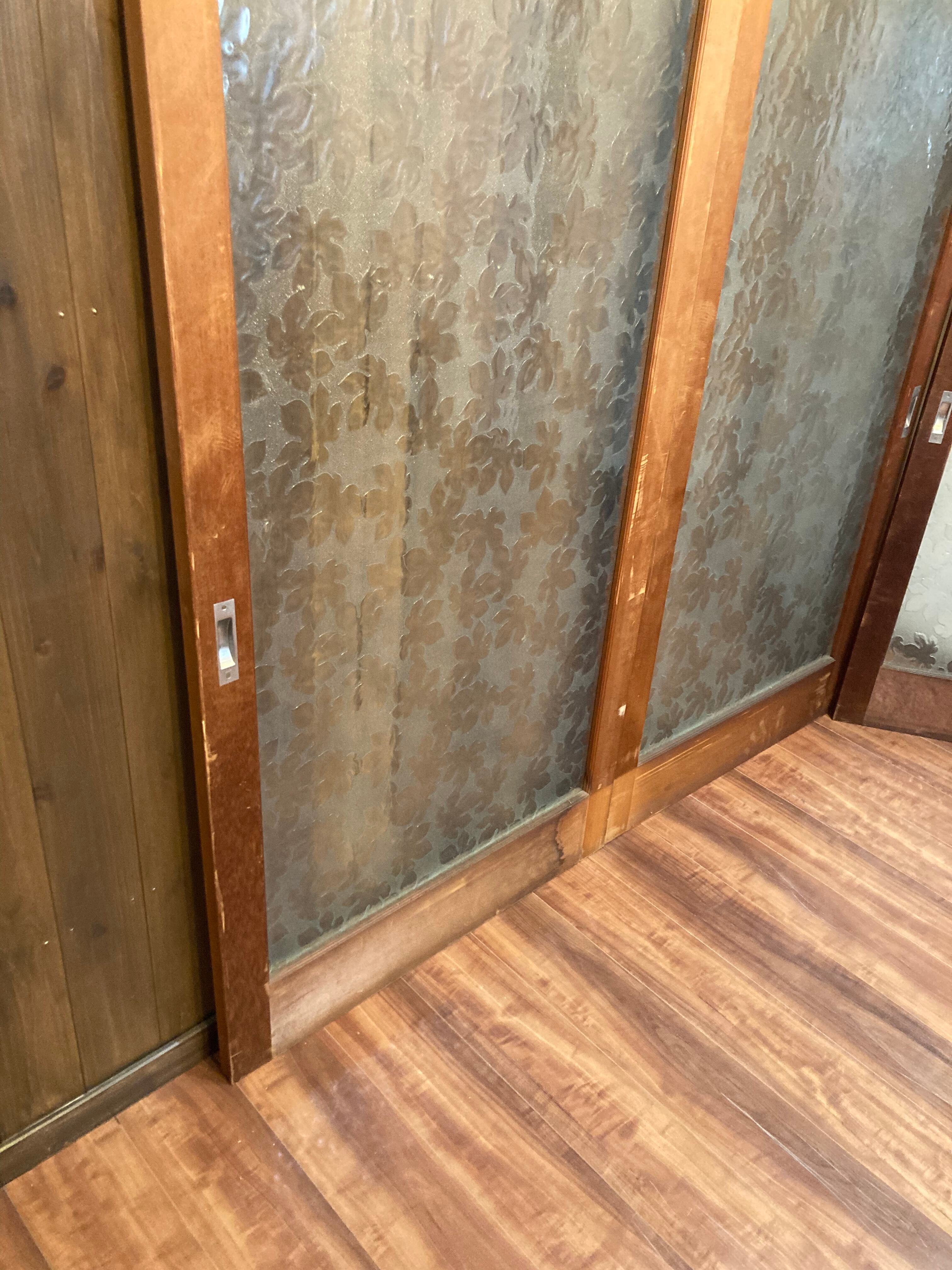 引き戸として使われていたようですが、戸車の動作確認をしていないため、手を入れないと使用できないと思われます。ご了承の上ご購入ください。