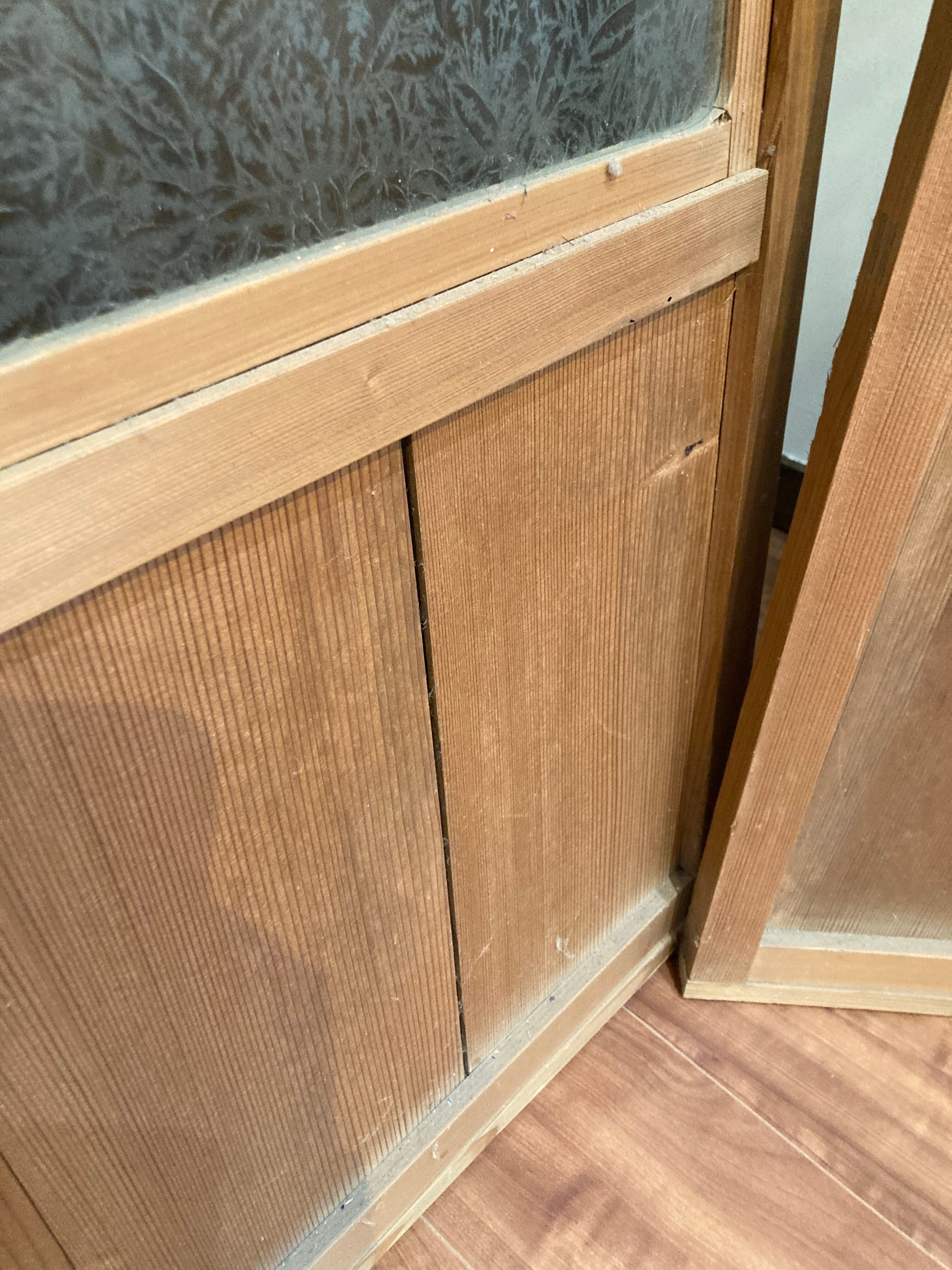 注意事項 : 霜降りガラスとすりガラスが一枚づつ割れています。くみこの木が折れてなくなっている建具が一本あります。