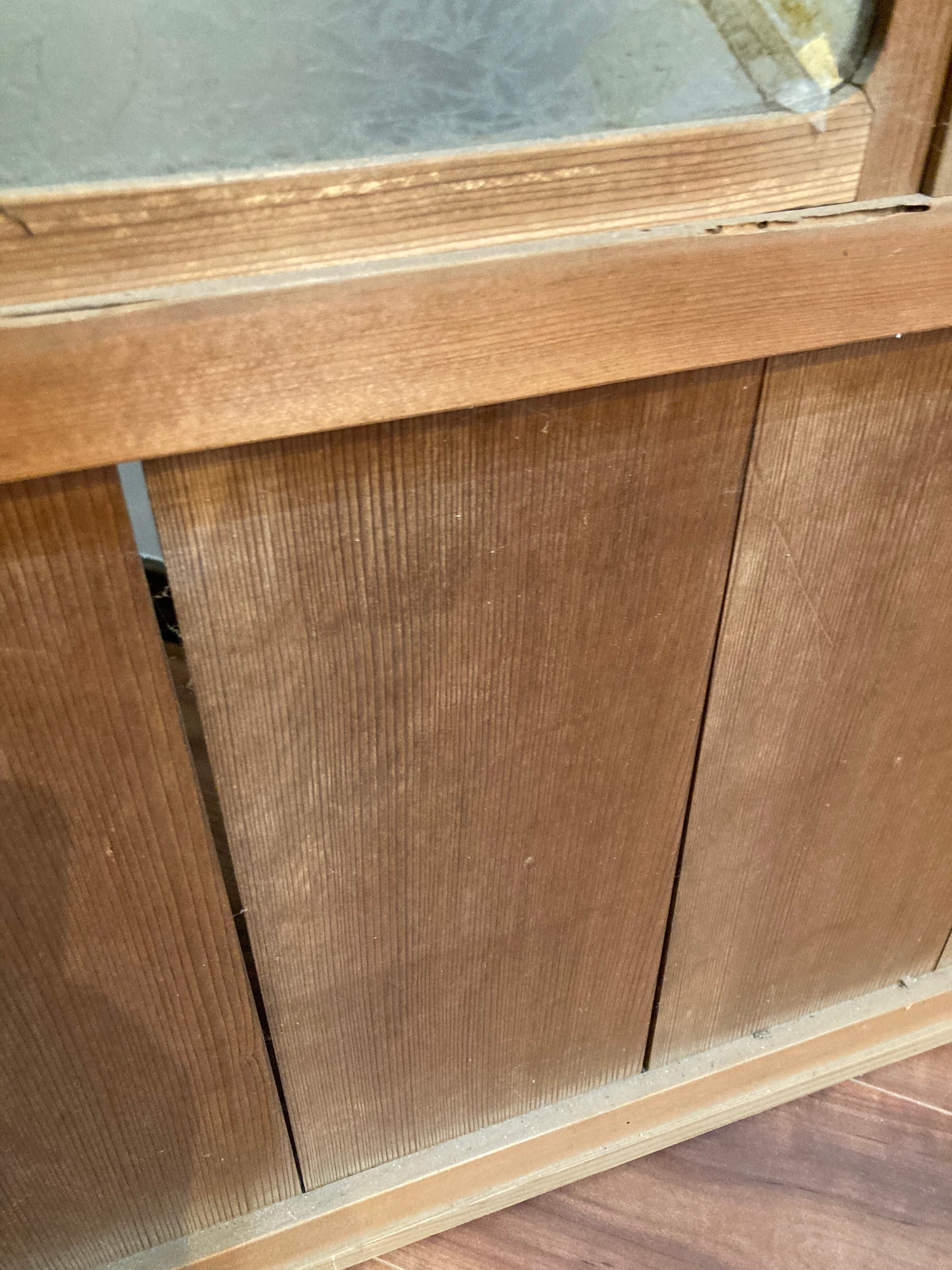引き戸として使われていたようですが、戸車の動作確認をしていないため、手を入れないと使用できないと思われます。ご了承の上ご購入ください。