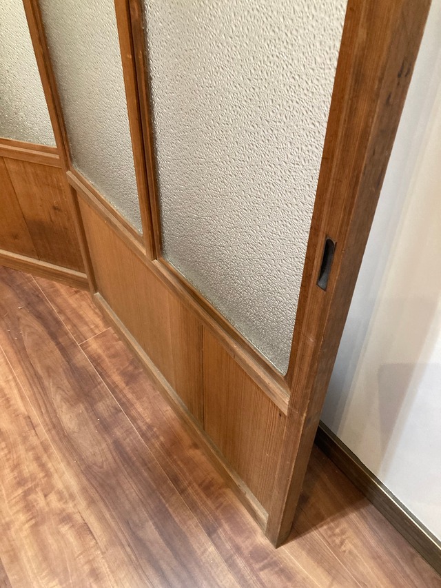 引き戸として使われていたようですが、戸車の動作確認をしていないため、手を入れないと使用できないと思われます。ご了承の上ご購入ください。
