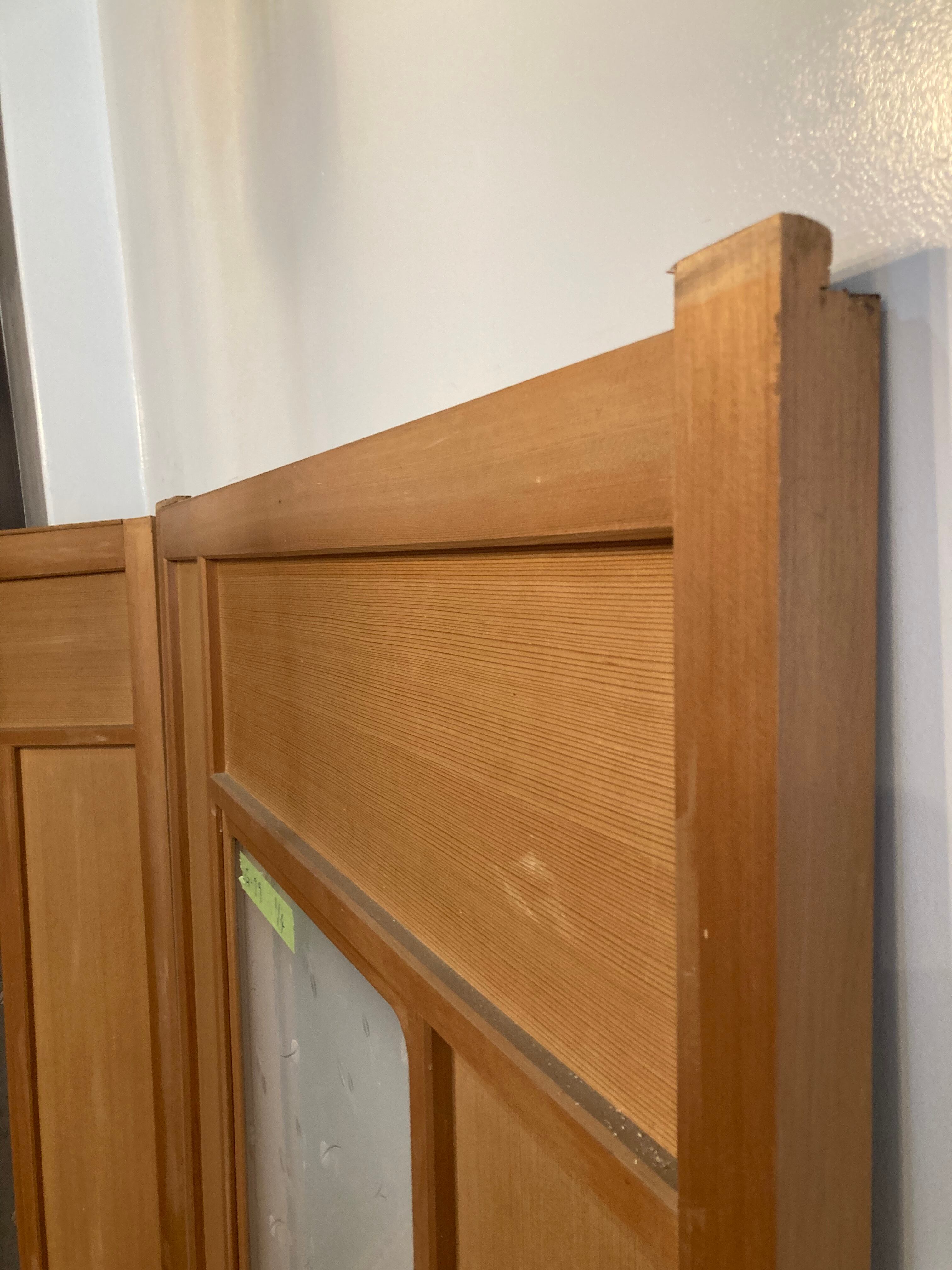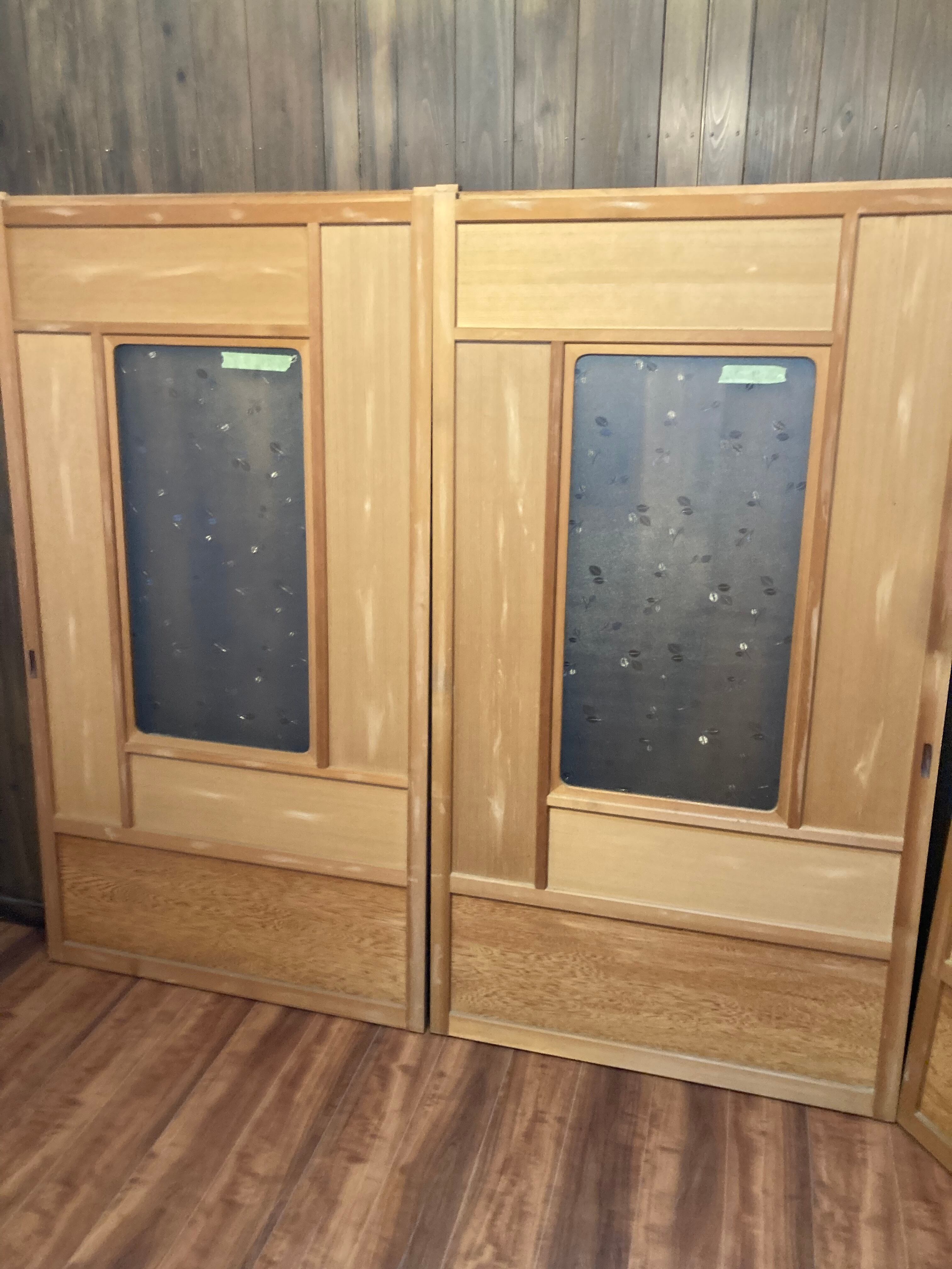 引き戸として使われていたようですが、戸車の動作確認をしていないため、手を入れないと使用できないと思われます。ご了承の上ご購入ください。