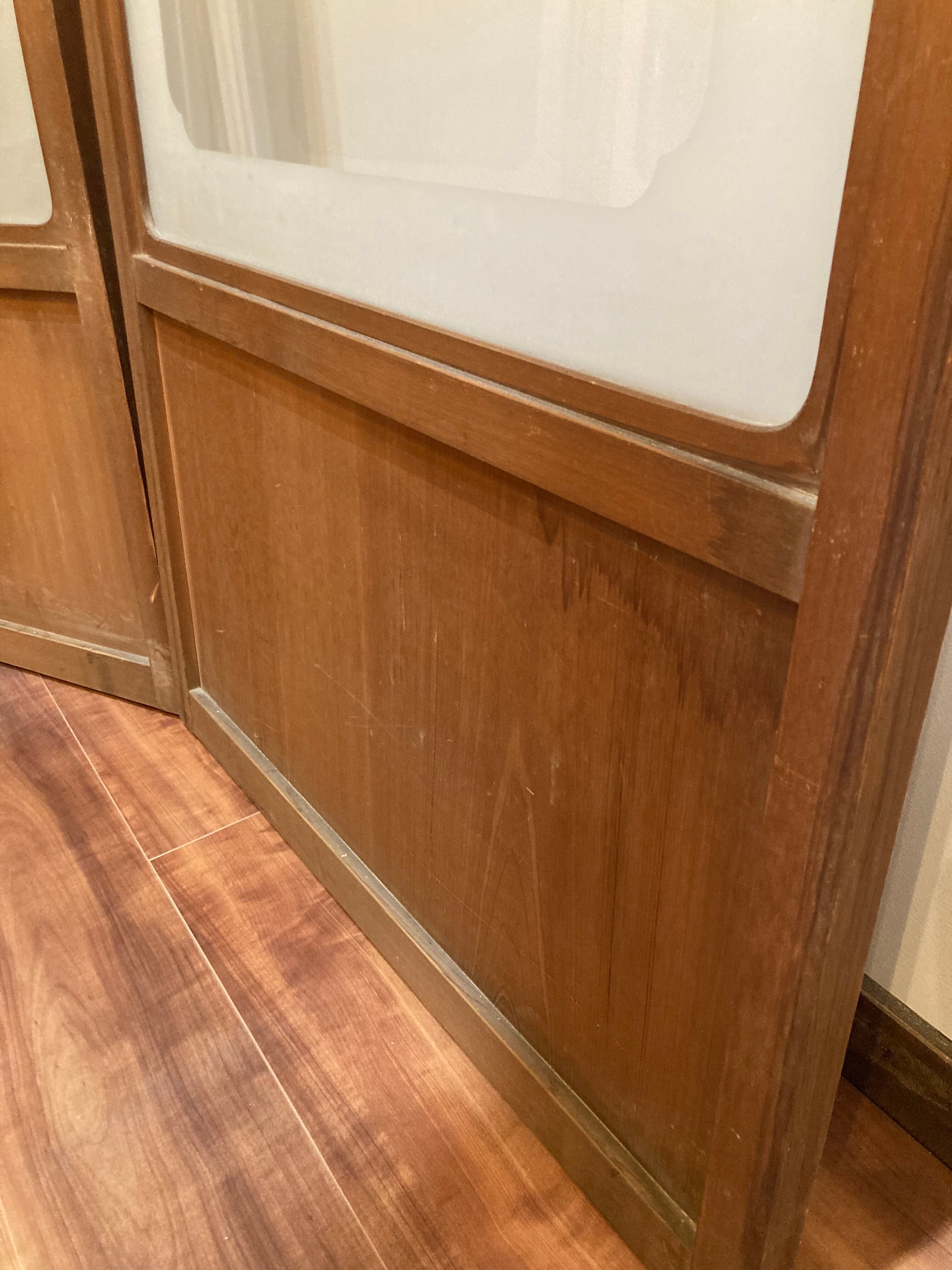 引き戸として使われていたようですが、戸車の動作確認をしていないため、手を入れないと使用できないと思われます。ご了承の上ご購入ください。