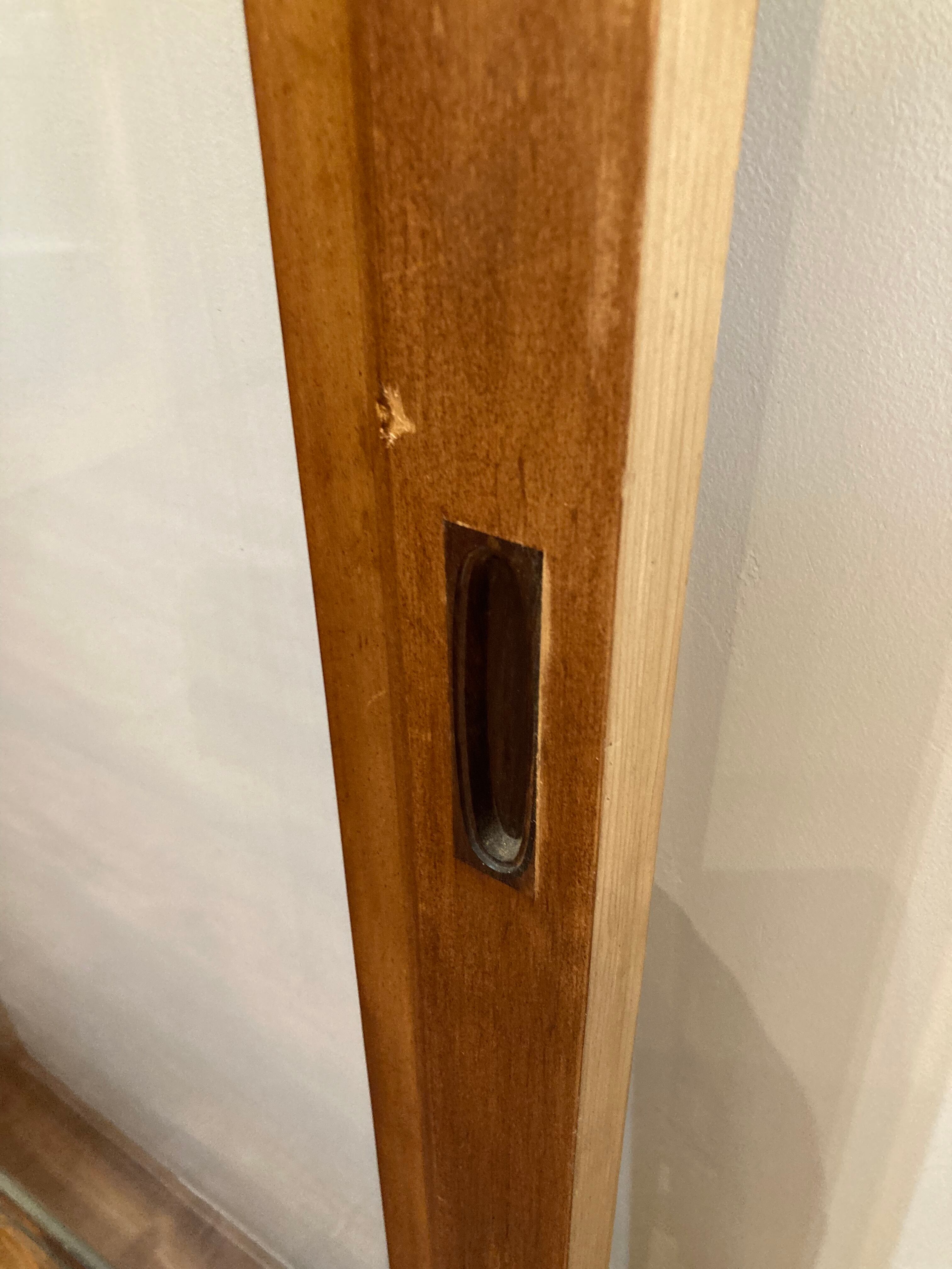 引き戸として使われていたようですが、戸車の動作確認をしていないため、手を入れないと使用できないと思われます。ご了承の上ご購入ください。
