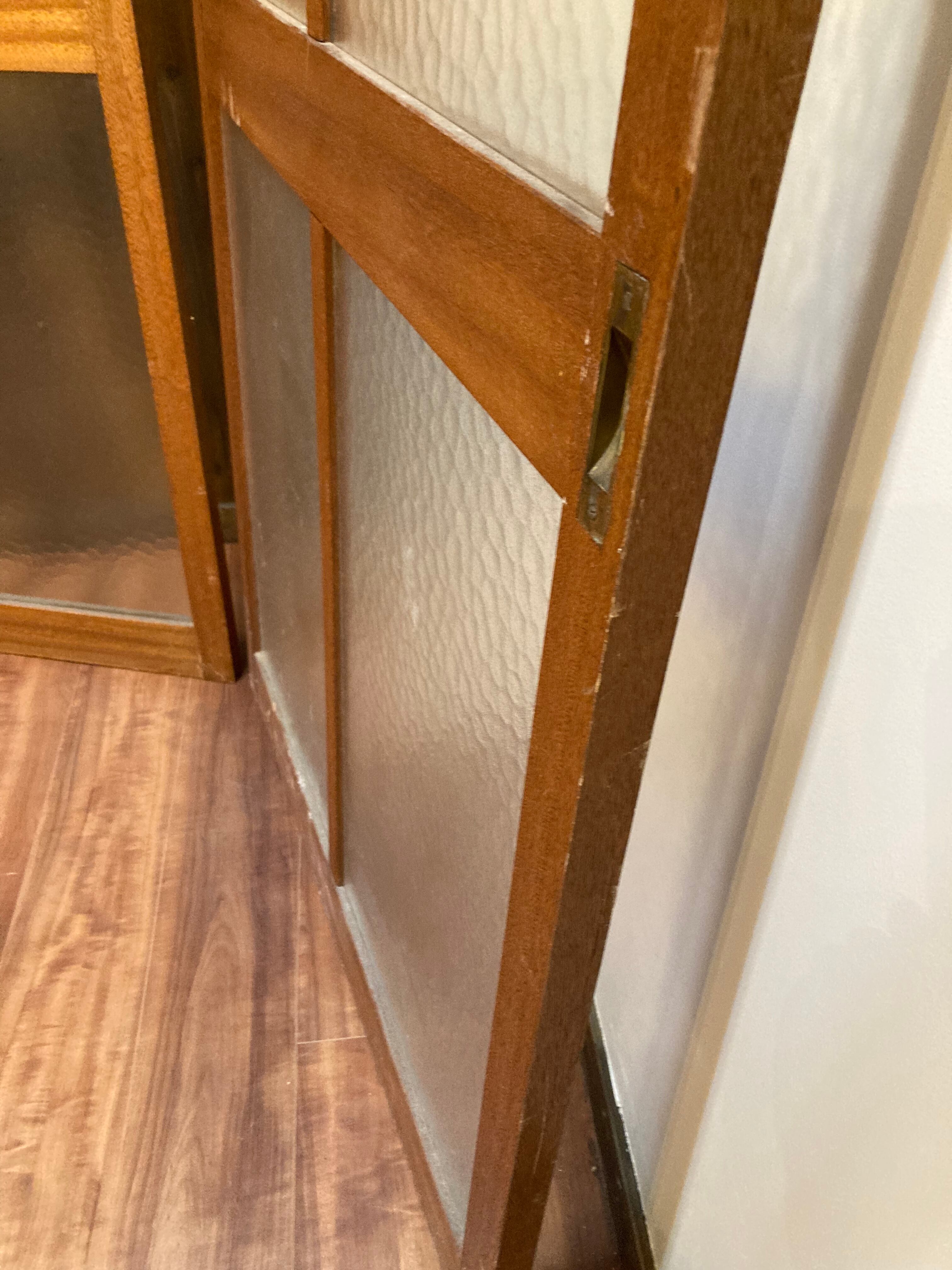 引き戸として使われていたようですが、戸車の動作確認をしていないため、手を入れないと使用できないと思われます。ご了承の上ご購入ください。