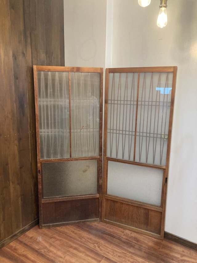 引き戸として使われていたようですが、戸車の動作確認をしていないため、手を入れないと使用できないと思われます。ご了承の上ご購入ください。