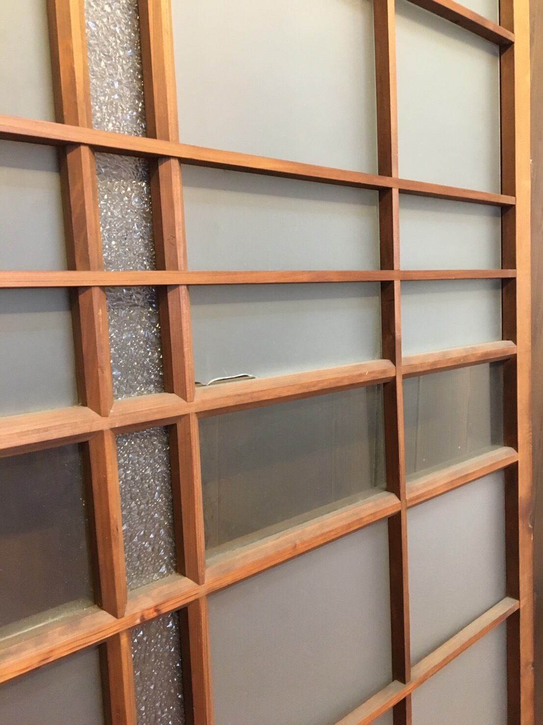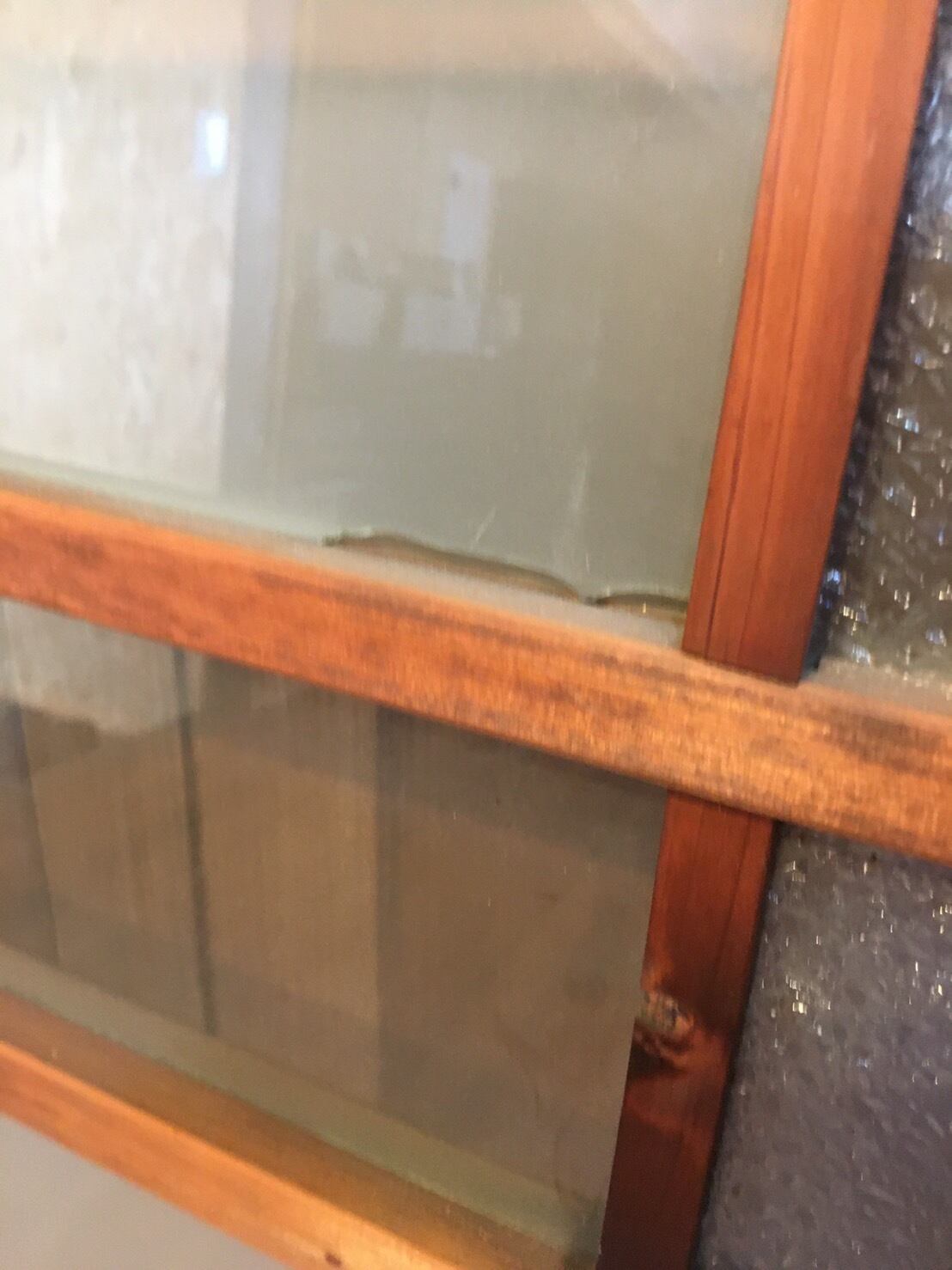 注意事項 : 割れているガラスがあります。腰板にすきまがあります。木枠の部分は水シミ、傷、汚れ、スレ、ほこりがございます。(写真に写っていない、傷やスレや汚れ等ある場合がございます)ガラス部分は比較的綺麗な状態です。一度ガラスを外してガラスクリーナーで拭き掃除をし、木枠は水拭き掃除をしてあります。一部取りきれない汚れが残っている場合がございます。