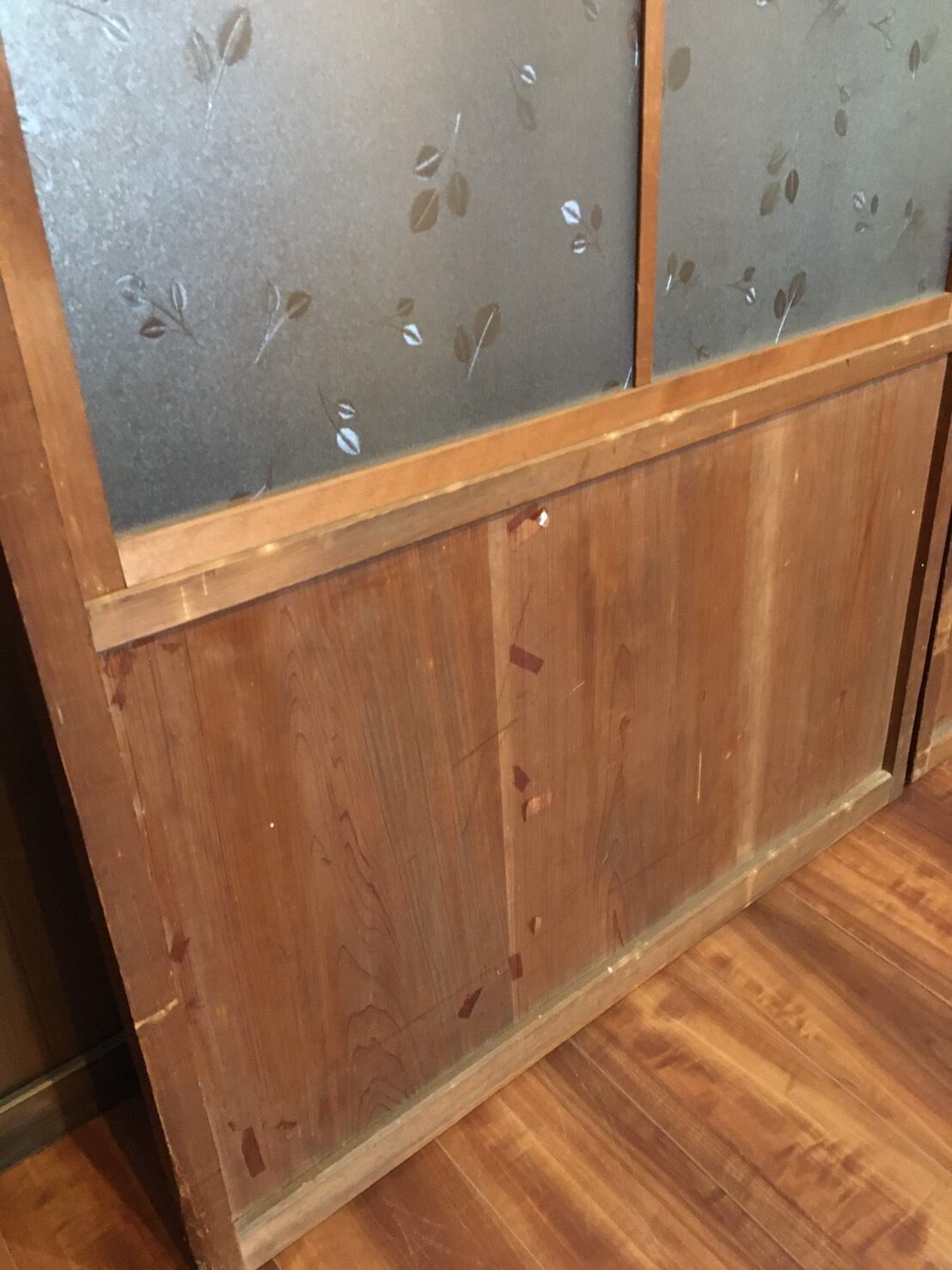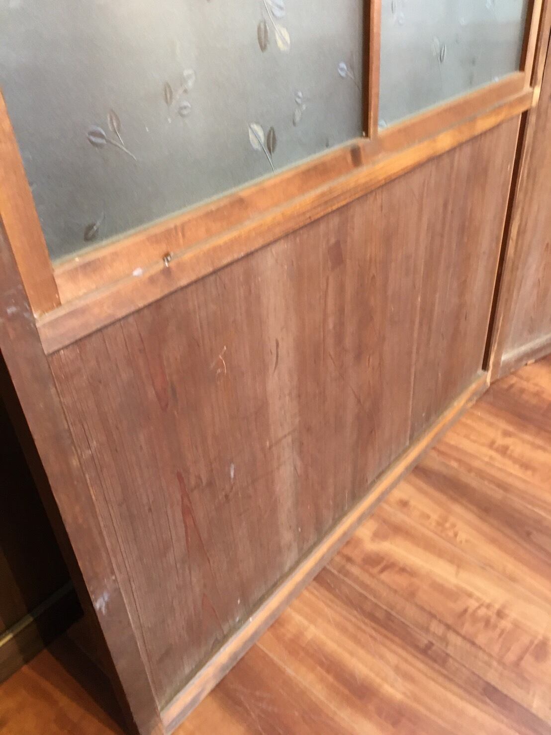 引き戸として使われていたようですが、戸車の動作確認をしていないため、手を入れないと使用できないと思われます。ご了承の上ご購入ください。