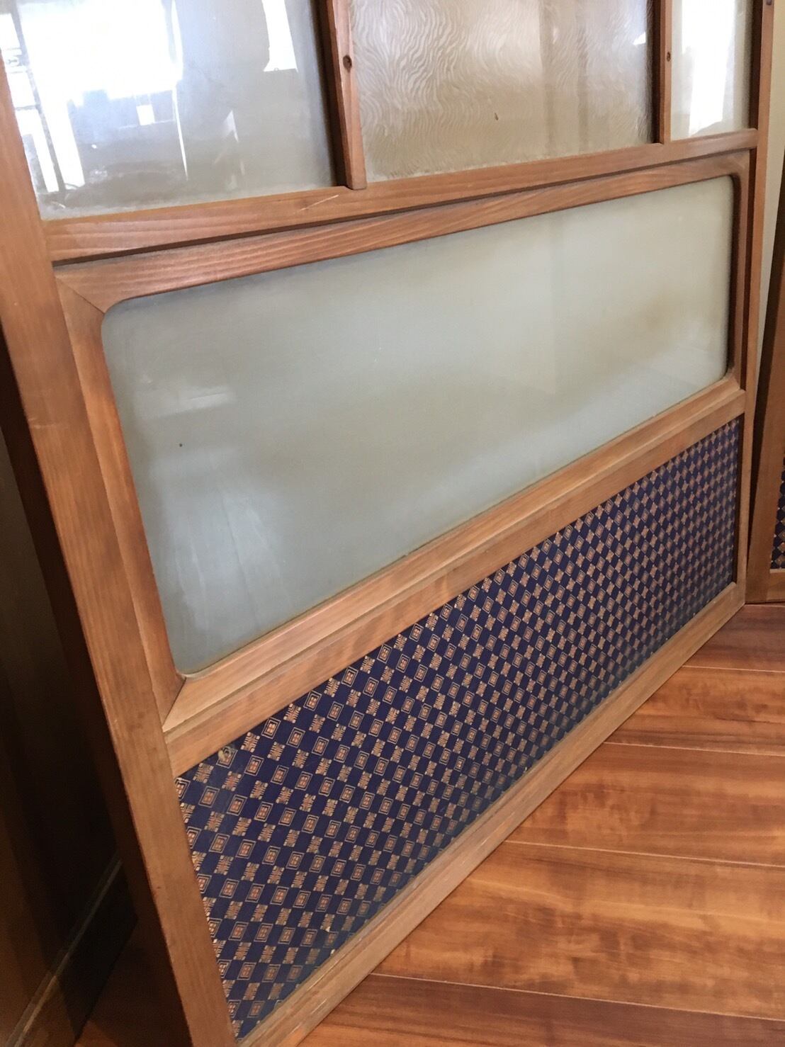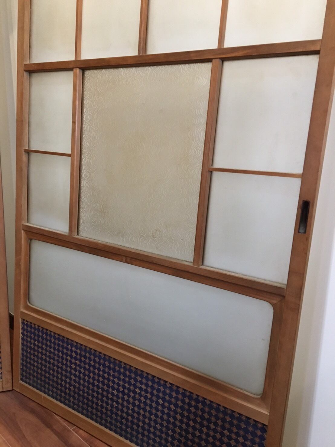 引き戸として使われていたようですが、戸車の動作確認をしていないため、手を入れないと使用できないと思われます。ご了承の上ご購入ください。