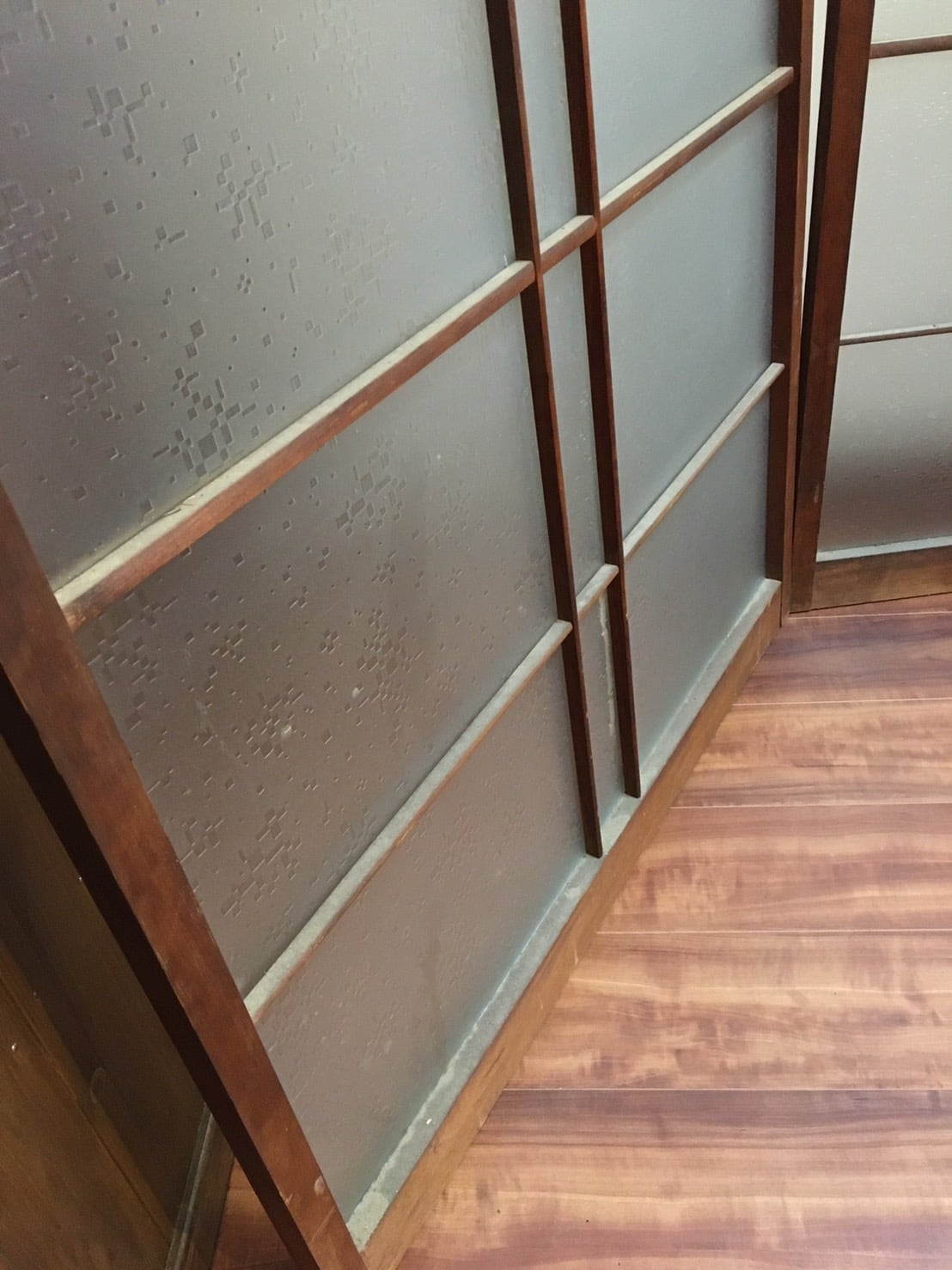 引き戸として使われていたようですが、戸車の動作確認をしていないため、手を入れないと使用できないと思われます。ご了承の上ご購入ください。