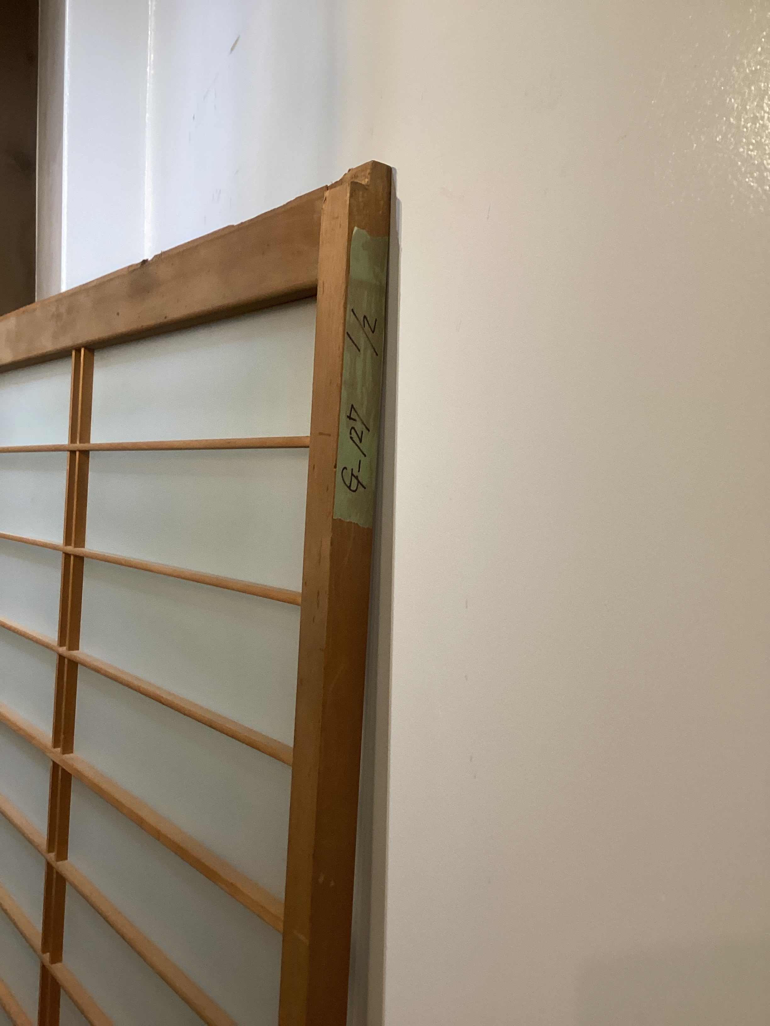 注意事項 : スリガラスともみじガラスの間に模様が入ったプリントベニヤの腰見切りが入っています。木枠の部分は傷、汚れ、スレ、ほこりがございます。(写真に写っていない、傷やスレや汚れ等ある場合がございます)ガラス部分は比較的綺麗な状態です。一度ガラスを外してガラスクリーナーで拭き掃除をし、木枠は水拭き掃除をします。一部取りきれない汚れが残る場合がございます。