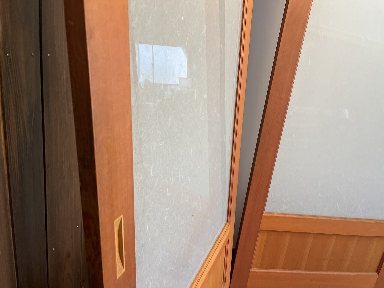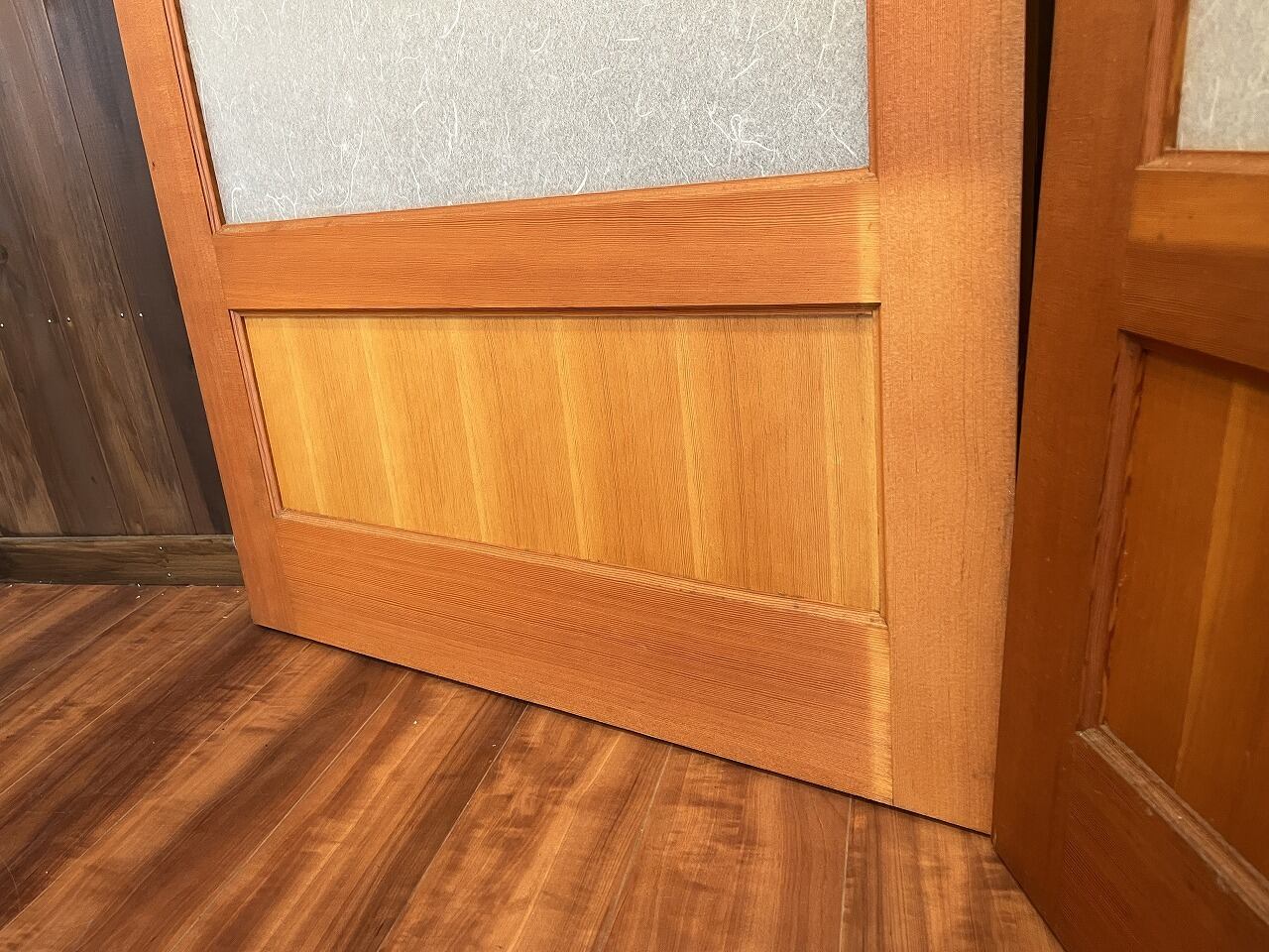 引き戸として使われていたようですが、戸車の動作確認をしていないため、手を入れないと使用できないと思われます。ご了承の上ご購入ください。