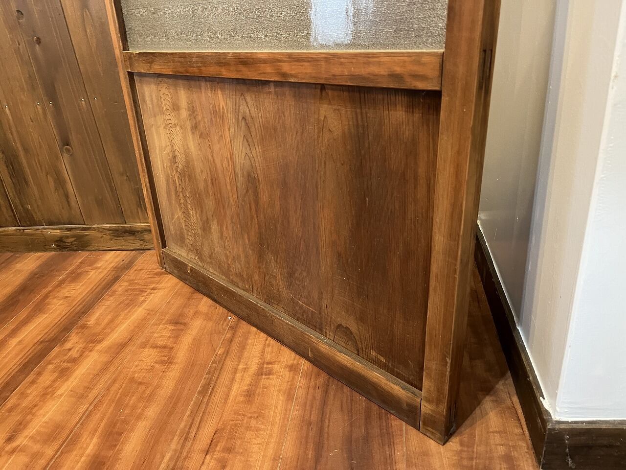 引き戸として使われていたようですが、戸車の動作確認をしていないため、手を入れないと使用できないと思われます。ご了承の上ご購入ください。