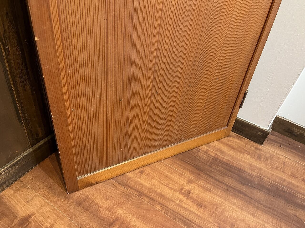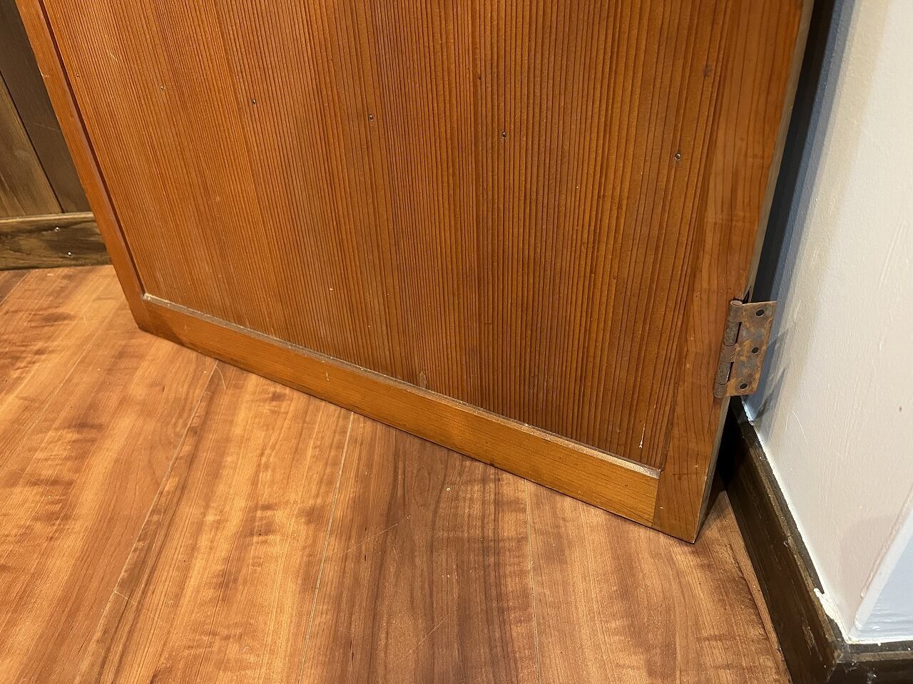 引き戸として使われていたようですが、戸車の動作確認をしていないため、手を入れないと使用できないと思われます。ご了承の上ご購入ください。